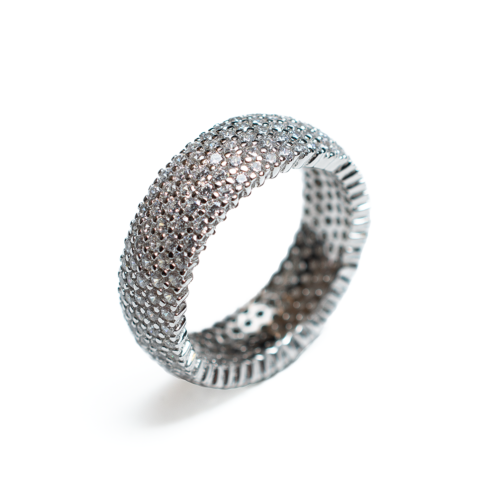 ANILLO DE PLATA .925 DE MANUFACTURA ITALIANA CON INCRUSTACIONES DE ZIRCONIAS SUIZAS BLANCAS.