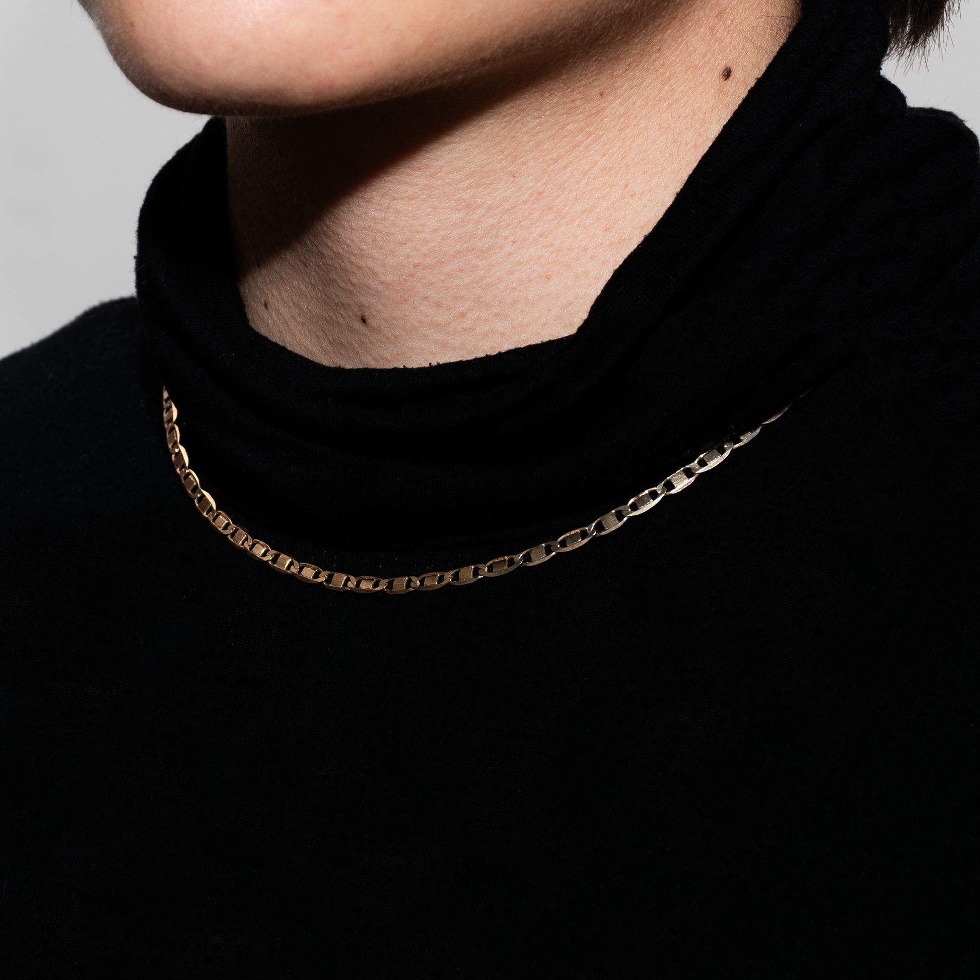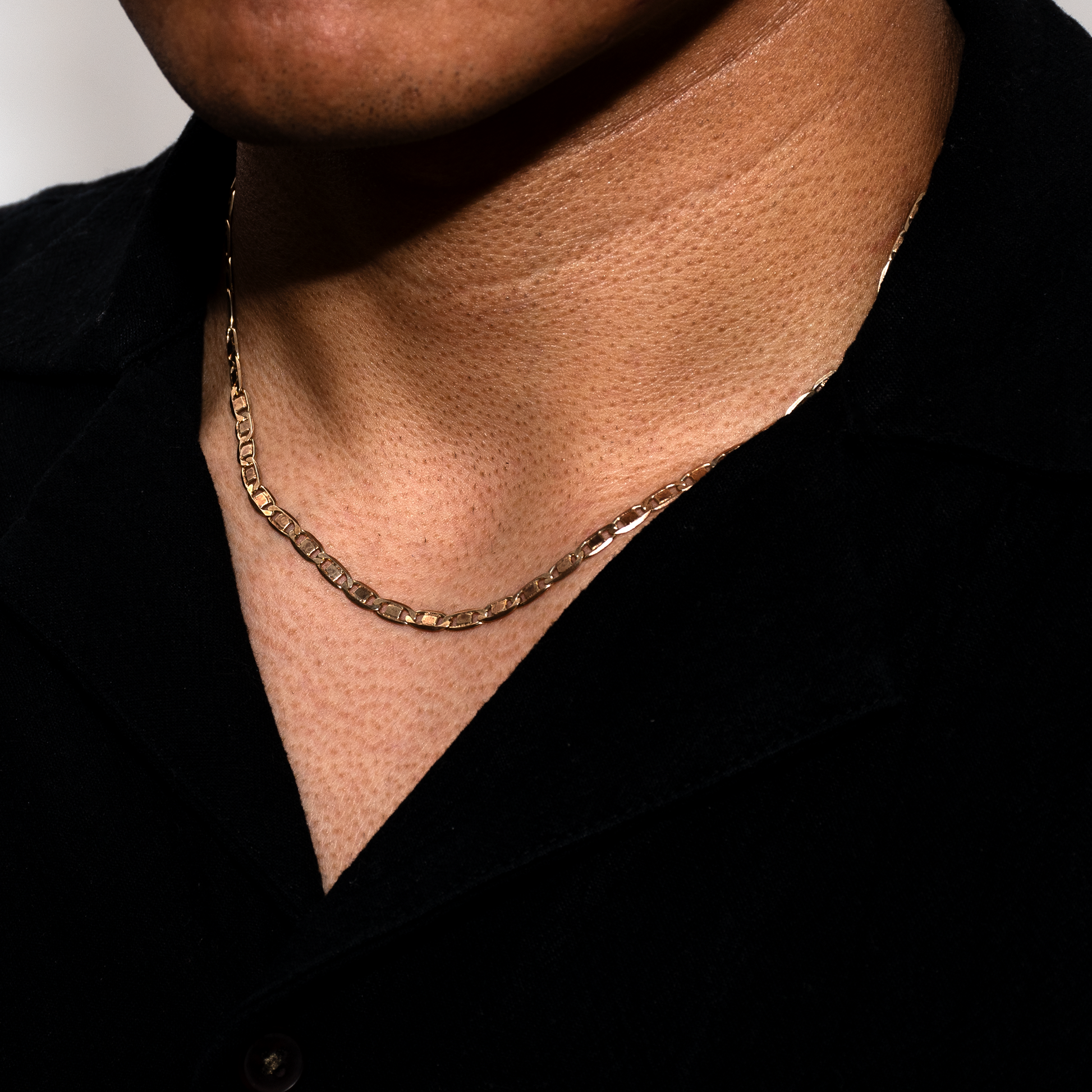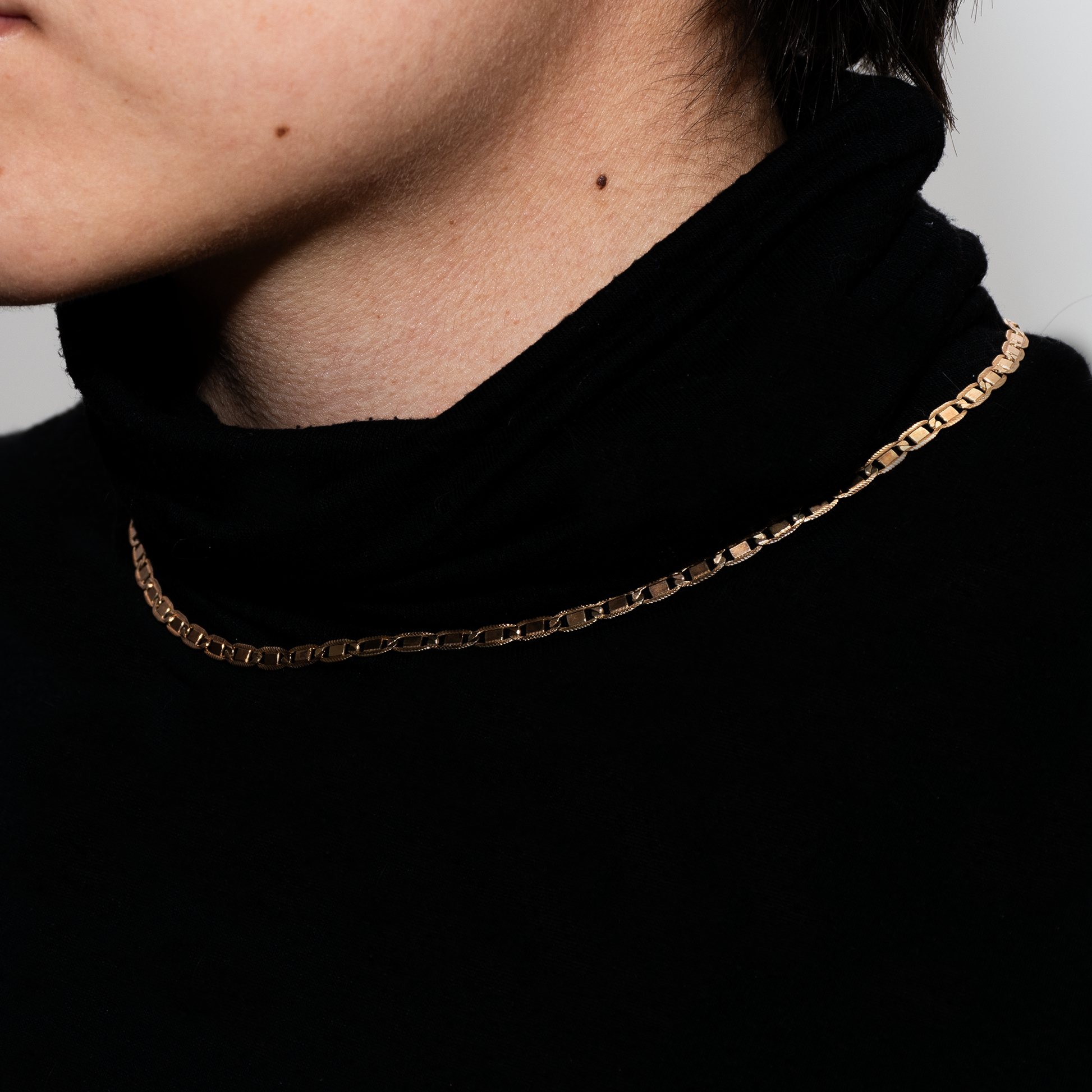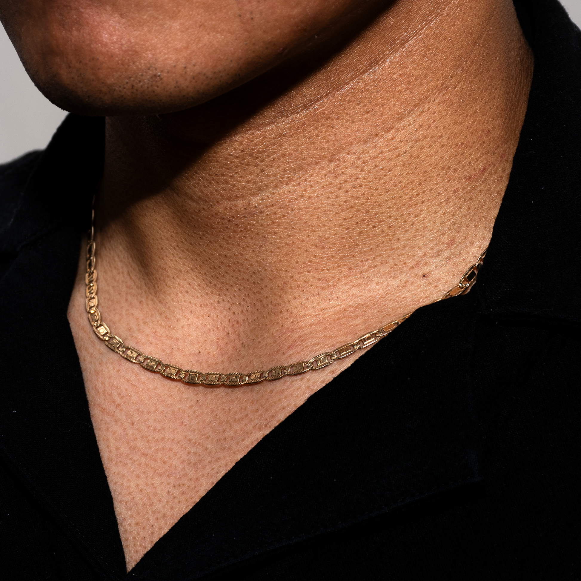 Una buena cadena no necesita presentación. Hecha en plata .925 con baño de oro, de eslabón estilo gucci, esta pieza impone. No es decoración, es declaración.