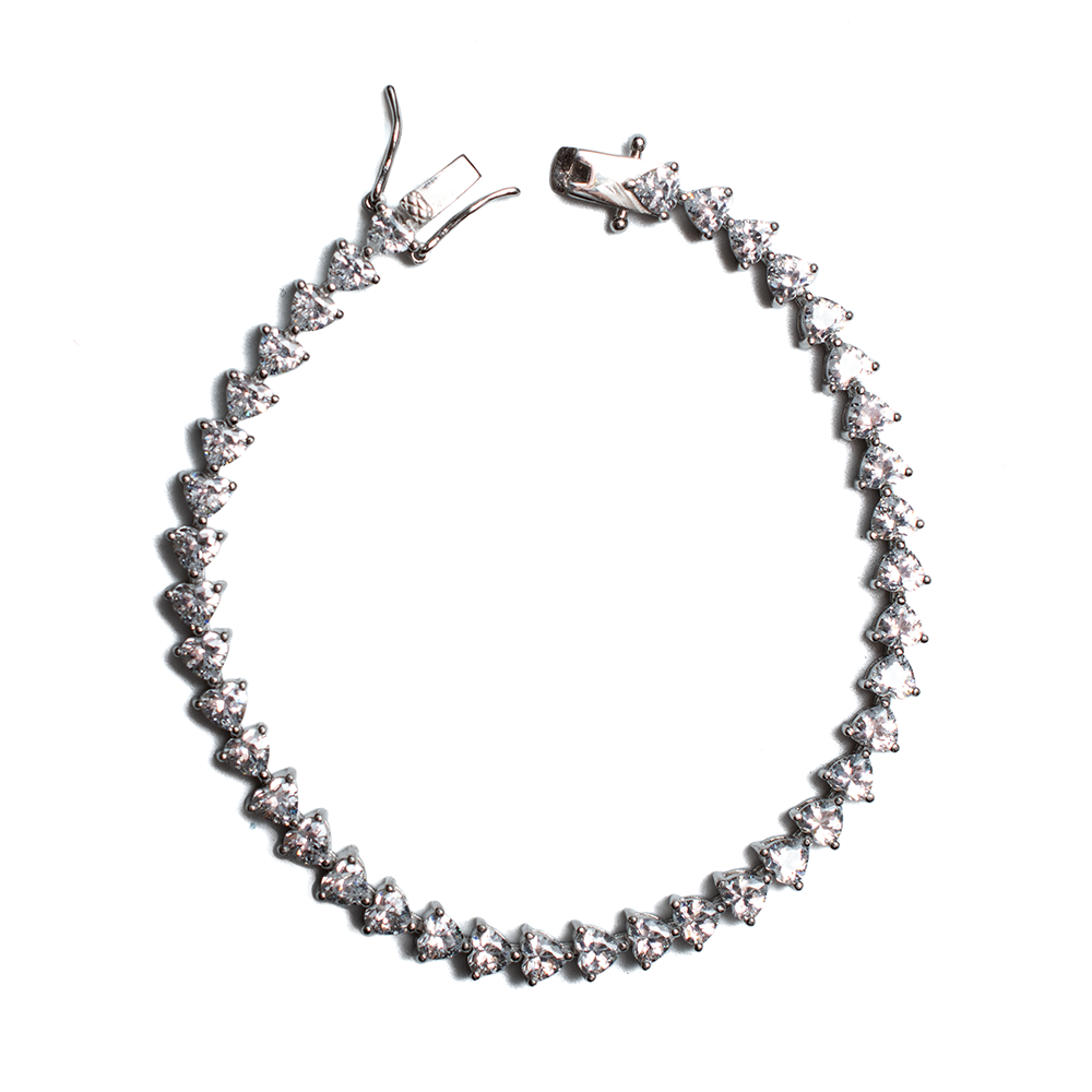 PULSO DE PLATA .925 CON INCRUSTACIONES DE ZIRCONIAS SUIZAS EN FORMAS DE CORAZÓN