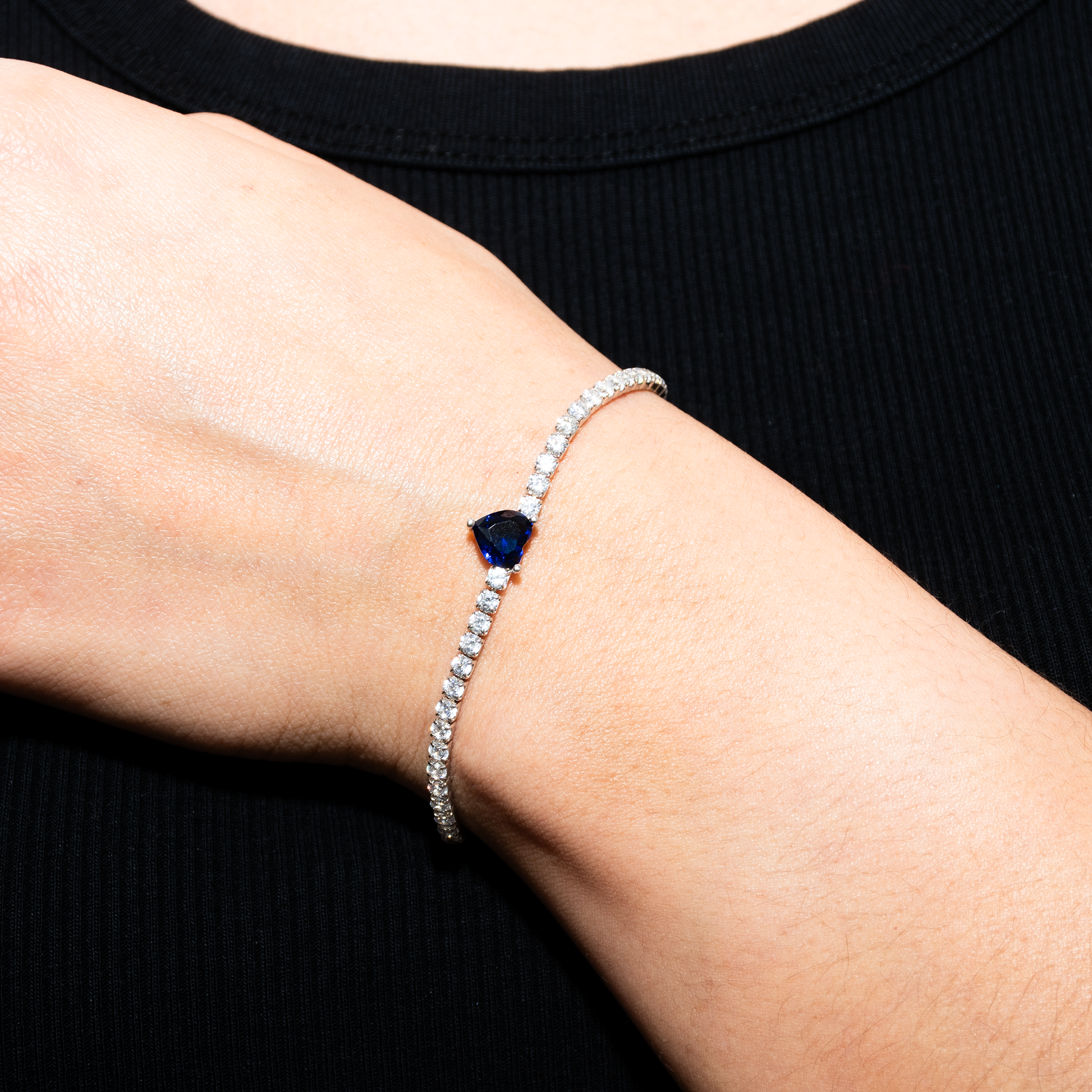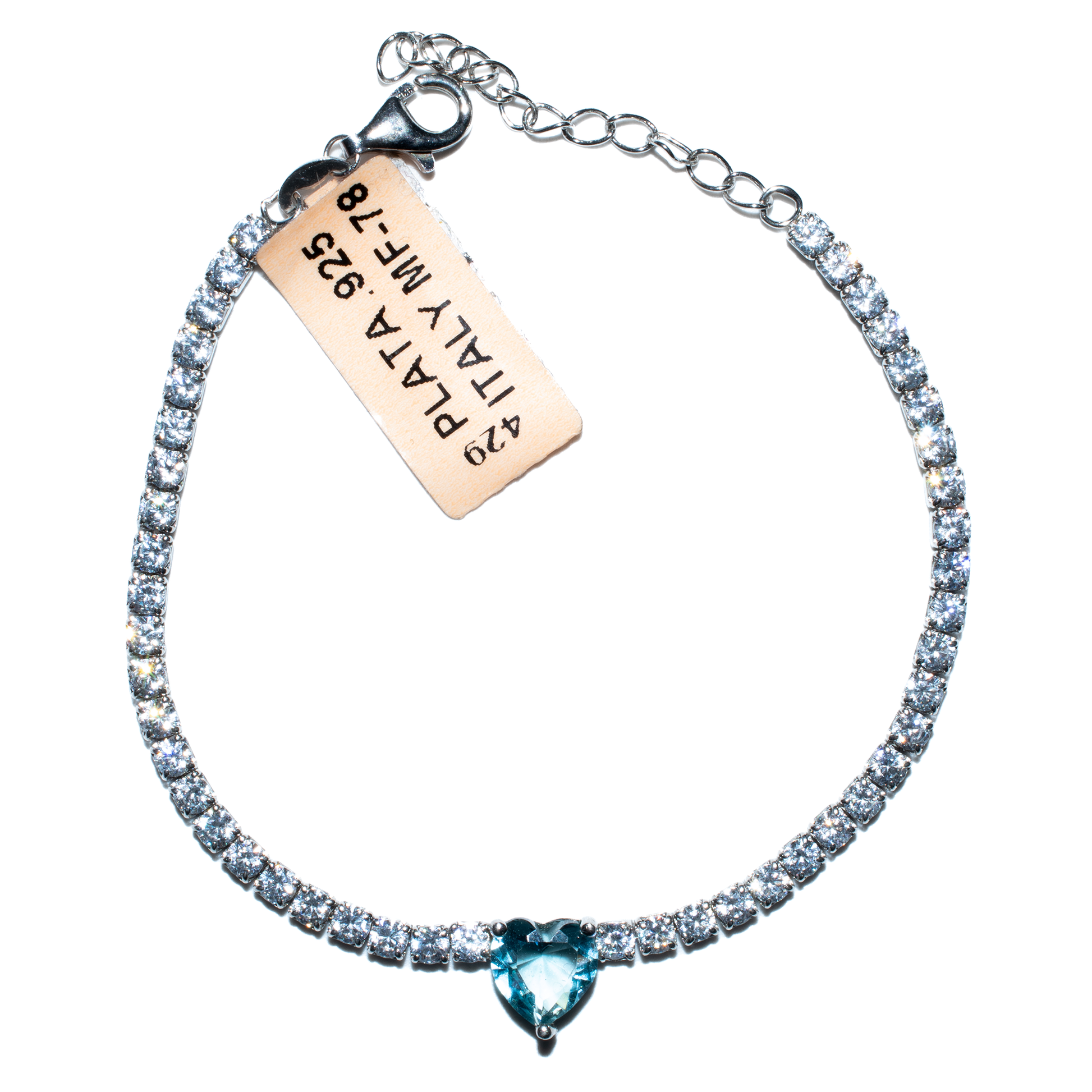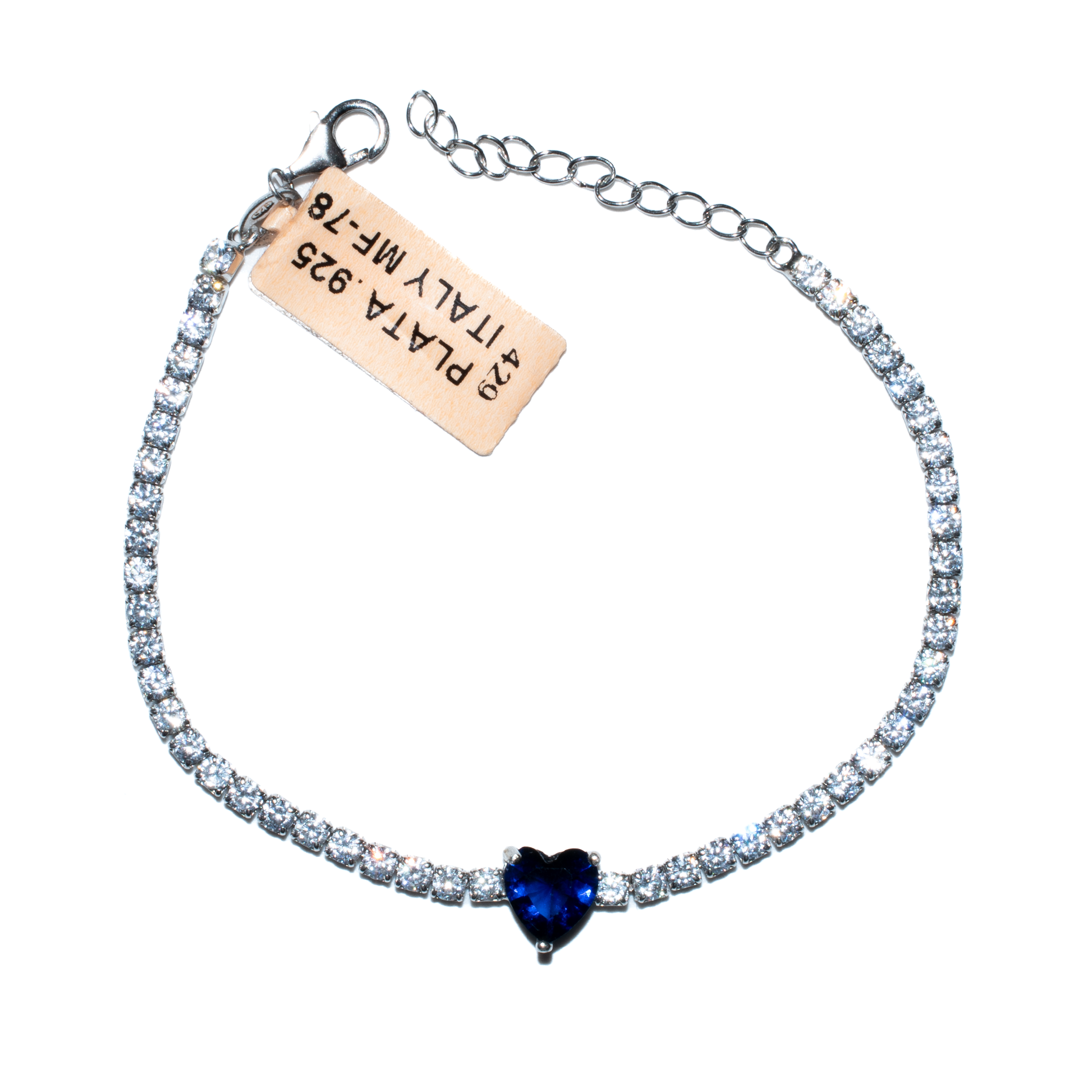 PULSO DE PLATA .925 ITALIANA CON INCRUSTACIONES DE ZIRCONIAS SUIZAS BLANCAS Y DIJE CON ZIRCONIA DE CORAZÓN